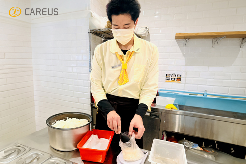 在喜憨兒庇護商店裡的全能好手—小哲,對於工作任務積極主動,更能自動自發地完成送餐、收餐、清潔的工作,甚至能協助內場切香菇;看似熟練的他,其實在4年的時間裡,付出了相當多的努力。
